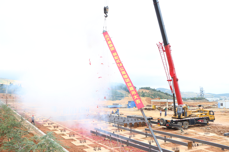 云南齊星杭蕭鋼構基地公寓樓首吊成功